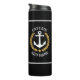 Bouteille thermique personnalisée avec votre grade de capitaine ou autre titre et votre nom de bateau, nom de famille ou autre texte souhaité. Doté d'une ancre nautique conçue sur mesure, de feuilles de lauriers de style or et d'un emblème étoilé sur le noir. Changez facilement la couleur arrière - plan pour correspondre à votre décoration ou à votre thème actuel. Fait un grand cadeau pour toute occasion.
