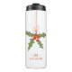 Nom du monogramme Noël Holly Winter Floral Thermal Tumblers dispose d'une décoration sainte en rouge et vert avec votre nom personnalisé et monogramme en élégant script rouge ci-dessous. Personnalisez en modifiant le texte dans les zones de texte fournies. Parfait pour l'anniversaire, les cadeaux de Noël, les meilleurs amis et plus. Conçu par ©Evco Studio www.zazzle.com/store/evcostudio