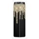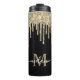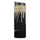 Monogrammed Black White et Gold Parties scintillant Drip Tumbler avec nom de script de calligraphie modèle.