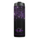Un arrière - plan noir classique avec de la poussière de parties scintillant en faux violet. Texte de couleur violette. Personnalisez et ajoutez vos initiales monographiques, votre prénom et votre nom complet.