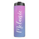 Nom typographie dégradés colorés dégradés de café thermique - Graphique en métal brossé élégant avec des couleurs dégradées rose et violet ombre. Personnalisez le modèle de nom de script de calligraphie personnalisé avec votre prénom. Un cadeau élégant pour son anniversaire, boîte de proposition de femme de chambre, la journée de la mère, soirée bachelorette, etc.
