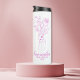 Gobelet isotherme élégant présentant une délicate illustration de ligne rose d'une main tenant des fleurs sauvages. Personnalisé avec le nom de votre demoiselle d'honneur, ce design élégant fait un cadeau mémorable pour les soirées de bachelorette, les brunchs de mariage ou les mimosas du jour du mariage. Féminin, moderne et totalement réutilisable.