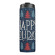Elegant Scandinavian-inspired "Happy Holidays" lettering integrated into a symmetrical folk-art pattern