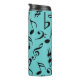 Plat amusant de notes musicales noires sur un thermomètre avec couvercle - idéal pour les musiciens, les professeurs de musique et les amateurs de musique en déplacement! La couleur Arrière - plan est modifiable à l'aide de l'outil de conception. Montré est bleu oeuf de robin / turquoise avec notes de musique noire. Conçu par Heard_.