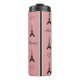 Illustration de Paris avec décoration de la Tour Eiffel et du coeur et design de texte de Paris sur arrière - plan rayé noir, blanc et rose