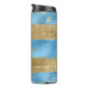 Scénario de parties scintillant en or moderne fille nom personnalisé thermo tumbler avec des traits en métal bleu et or brillant pour un cadeau personnalisé.