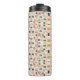 Step back in time with a contemporary edge with this vintage-inspired thermal tumbler. Featuring a charming, all-over pattern of abstract "pebbles" and organic pod shapes, this design captures the essence of Mid-Century Modern aesthetics. The palette is a delightful mix of blush pink, mustard yellow, and teal on a crisp cream background, accented by fine black outlines that give it a hand-drawn feel. This tumbler offers a sophisticated yet whimsical look.