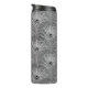 Un élégant motif en plumes de paon fait dans une parties scintillant argentée regarde un arrière - plan gris.