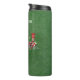 Ce biberon thermale pour garder vos boissons froides ou chaudes est vert foncé avec le Père Noël à bord d'un train de bonbons à menthe rouge et blanche portant des lettres à Père Noël et Sucres de canne. Customisez votre texte avec le modèle.