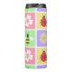 Les carrés pastel roses, jaunes, violets et verts sont ornés de coccinelles, de fleurs de bois de chien, de marguerites et d'abeilles, puis bordés de coutures blanches serrées pour créer un motif de printemps amusant et doux.