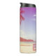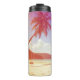 Bouteilles Isothermes Plage, cocotier, lit en bois.