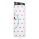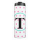 Joli pois rose sur arrière - plan blanc. Personnalisez avec votre initiale monogrammée en texte noir au centre du cercle bleu turquoise. Des cercles géométriques frais et tendance sur des tumblers pour votre style unique. Amusant pour tous ceux qui aiment les points. Conception originale © TamiraZDesigns. www.zazzle.com/tamirazdesigns