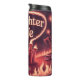 Ce graphique stylisé et romantique présente un petit château de style imaginaire entouré de flammes et de deux camions de pompiers. Le texte "Femme pompière" est écrit dans le ciel avec des lettres enflammées, créant un hommage fantaisiste et dédié à l'épouse d'un pompier.