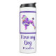 Français Poodle chien animal de compagnie silhouette violet, rose, jaune et bleu motif abstrait numérique. Ce tumeur thermique est sûr de mettre un sourire sur n'importe quel visage amoureux des chiens. De plus, c'est écologique, donc elle peut le garder pendant des années. Changez "I love my dog"/"Nom" avec le texte que vous aimez des deux côtés de la bouteille.
