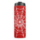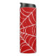 La toile d'une araignée se forme dans un vide audacieux de couleur rouge sang.