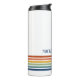Sip in style with this Retro Monogrammed Minimalist Stripes Thermal Tumbler. Featuring bold blue, turquoise, green, orange, and terracotta stripes, it blends vintage charm with modern, minimalist design. Personalize it with your name or initials for a unique, standout touch that makes it truly yours. Perfect for keeping drinks cold, this custom tumbler is ideal for gifting or adding a stylish, personal touch to your daily routine.