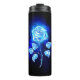 Fleur, rose abstrait de la flamme bleue sur arrière - plan noir. Rose de feu.