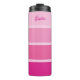 Ce tumbler tendance et girly présente quatre rayures dans des gradients de rose à l'ombre variable - rose chaud à travers rose vif - et votre nom dans la typographie de script pour un look féminin et moderne.