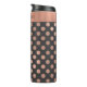 Chic Thermal Tumbler fait dans un gris de fusain foncé et brillant à l'apparence rose motif de pois dorés, avec une solide bande rose dorée à l'aspect feuille, au sommet. Personnalisez le texte noir pour lire ce que vous voulez. Super idée cadeau pour elle.