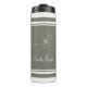 Focus on your mindful movement with this sage green thermal tumbler. Featuring an ivory floral sketch and sporty athletic stripes, plus your name for a personal touch. This high-quality vessel is a thoughtful bridesmaid gift, birthday present, or unique wellness gift idea for her. It is ideal for keeping drinks at the right temperature during yoga or your commute. A chic addition to your active lifestyle. ©Susanne Sachers - Sunny Wanderlust 🌞✈️