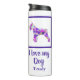 Schnauzer animal chien silhouette violet, rose, jaune et bleu motif abstrait numérique. Ce tumeur thermique est sûr de mettre un sourire sur n'importe quel visage amoureux des chiens. De plus, c'est écologique, donc elle peut le garder pendant des années. Changez "I love my dog"/"Nom" avec le texte que vous aimez des deux côtés de la bouteille.