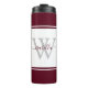 Scénario minimaliste moderne Girly personnalisé monogramme tendance tumbler thermique monogramme. L'élégant script de style bordeaux est assorti à la ligne de couleur, mais le compense dans le style, créant une touche amusante à l'aspect minimaliste.