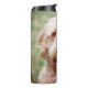 Une photo d'un endoodle doré souriant. Chien de créateur, récupérateur d'or et caniche.