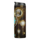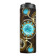 Turquoise lenses with antique watch with brass gears and golden keys on rusty, brown background. Steampunk style.