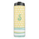 Jolie tasse thermique réalisée en turquoise, jaune et blanc, avec des points fantaisistes et des rayures horizontales. Personnalisez la tasse avec une initiale monogramme sur le devant. Idée cadeau géniale pour elle.