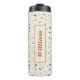 Modélisée sur tuile de terrazzo italienne, cette bouteille thermo tumbler a un look festif et amusant confetti flake dans les tons chauds de terre avec une touche de couleur. Cette bouteille d'eau a un look propre et moderne avec des taches de faux carreaux en gris, orange rouille, jaune, gris-vert, vert menthe et noir contre un arrière - plan couleur crème. Il est prêt à être personnalisé avec votre nom en caractères gras couleur rouille orange.