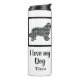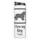 Terre-Neuve / Newfie chien silhouette jaune, bleu et noir Grille Lignes élégant motif abstrait. Changez ‘ I love my dog’ / ‘Nom’ avec n’importe quel texte que vous aimez des deux côtés. Ce tumeur thermique est sûr de mettre un sourire sur n'importe quel visage amoureux des chiens. De plus, c'est écologique, donc elle peut le garder pendant des années.