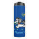 Couleur bleu moyen, Paruline thermique, Avec un dessin d'un chien de dessin, Tiffany et son Frisbee =(Art By P.J.M.) avec une option pour customiser ="Votre nom ici!", en texte bleu clair.
