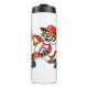 Cette illustration vivante présente un tigre de dessin animé joyeux en uniforme de baseball et casquette, tenant une batte en plein milieu de la balançoire. La fourrure orange vif, le motif rayé et la pose énergique du tigre en font un personnage captivant et dynamique. Les couleurs vives et le design ludique incarnent l'excitation du jeu.