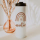 Cette tante voyage tasse de café tumbler dispose d'une terre cuite bohème orangé arc-en-ciel brûlé avec le soleil et une police manuscrite amusante. C'est la façon idéale d'annoncer une tante à venir ou de faire un grand cadeau à n'importe quelle tante pour une occasion spéciale. 💜 Les couleurs sont modifiables ! Cliquez sur "customiser plus loin" pour modifier les couleurs.