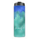 Un arrière - plan turquoise et vert faux métallique. Décoré de gouttes bleues royales, la peinture goutte à goutte. Personnalisez et ajoutez votre nom écrit avec un script de style manuscrit.