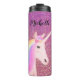 Unicorn Pink Ombre Parties scintillant Personnalisé Thermal Tumbler fait un cadeau cool pour une fille qui aime les licornes!  La tumeur a une parties scintillant faux rose arrière - plan brillant et une grande belle licorne blanche sur le devant avec des cheveux pastel arc-en-ciel.  Le nom est dans le script de calligraphie noir en lettres sur la partie supérieure.