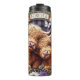 C'est une illustration charmante et fantaisiste montrant deux adorables veaux des hautes terres, moelleux, qui s'embrassent. Les veaux sont entourés d'une couronne fleurie aux fleurs colorées et aux papillons, et l'arrière - plan est un motif en vichy noir et blanc. Une bannière avec le mot "FOREVER" est placée au-dessus des veaux. Toute l'image dégage un sentiment de chaleur, d'amour et de beauté naturelle.