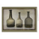 Art rustique, morne avec 3 bouteilles d'antiquités dans les tons feutrés de vert et de brun.