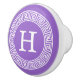 Bouton De Porte En Céramique Améthyste Wht Cadre Rnd Clé Grecque Monogramme Ini
