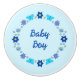 Ce superbe bouton en céramique présente l'image art numérique d'un groupe de fleurs et de papillons, chacun d'un bleu pour représenter un bébé garçon. Les fleurs comprennent Dahlias, nénuphars, ne m'oubliez pas et Chrysanthemums. Les fleurs et les papillons sont disposés en cercle et il y a du texte personnalisé dans le cercle pour que vous puissiez le personnaliser comme vous le souhaitez, ce design parfait pour la salle de pépinière pour célébrer un nouveau-né garçon.