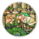 Les beaux-arts botaniques vintages magnifiques par Tiffany de reproduction de fenêtre en verre teinté de Nouveau d'art d'un jardin de l'eau avec des fleurs de Lotus et Lilypads sont sur ce bouton. L'image est public domain dû à copyright expiré.