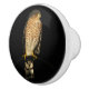 Ce bouton de porte en céramique animale est muni d'un Hawk Shinned Sharp (Accipiter striatus) perché sur le sommet d'un mangeur d'oiseaux espérant prendre un repas. Il a un regard de chasseur. Ses talons jaunes et ses yeux oranges dominent. Il a de belles bandes de rouille et de crème sur sa poitrine, des plumes rayées blanches et noires, et un dos gris. La proie de ce faucon est surtout de petits oiseaux. Bien que le "Sharpie" soit le plus petit faucon d'Amérique du Nord, il est un prédateur très féroce. Une idée pour les amateurs d'oiseaux !