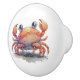 Un bouton en céramique avec une aquarelle illustration d'un crabe très mignon.