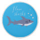 Un bouton en céramique mignon avec un requin mignon de natation de bande dessinée. Le texte indique que "j'aime des requins". Sentez-vous libre pour le modifier ou pour l'enlever. Idéal pour la raboteuse de crèche ou de pièce d'enfants ou pour le coffret de salle de classe.