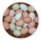 Ce bouton en céramique présente des oeufs de poule multicolores libres. Un bel accent de déco pour les amateurs de déco champêtre.