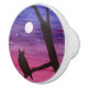 Une aquarelle et Stylo & Encre d'une Grande Chouette à Cornes en silhouette sous une pleine lune orne ce bouton en céramique !