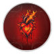Coeur flamboyant. Coeur stylisé où la surface du coeur est fissurée et montre des traces de blessure et de lutte, ajoutant une profondeur spectaculaire à l'image globale. Les flammes semblent envelopper le coeur, augmentant l'impression d'énergie et de vitalité. La combinaison du coeur réaliste, des flammes dynamiques et de la chute sanglante crée une métaphore visuelle puissante pour l'amour, la douleur et la passion.