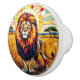 A lion on the safari done in a colorful abstract stained glass tile mosaic knob for a dresser, cabinet door or craft project.