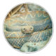 Un bouton en céramique avec une photo d'un serpent à sonnette.