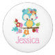 Jolie chouette de forêt Baby Girl Design personnalisé avec nom ou texte personnalisé ou citation, une forêt boisée amusante dans des couleurs vives. En Turquoise, Aqua, Rouge et orange avec fleurs, glands et feuilles. Pour la nouvelle petite fille ! Idéal pour Baby shower Cadeau - monogramme natal stats ceramique knob! ~ Regardez ma boutique pour voir toute la collection Baby avec ce design!